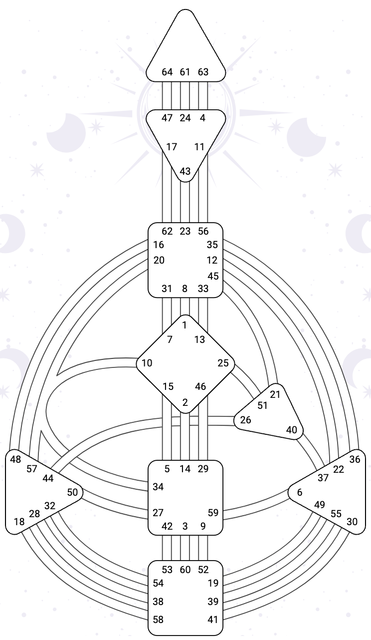 Tu danses au rythme de la Lune. Mécaniquement, en tant que Réflecteur, tu n'as aucun centre défini. La seule constante fiable pour toi est le cycle de la Lune, qui, en 28 jours, transite par les 64 portes et te permet de faire l'expérience de toutes les énergies. Ta vérité est une sensation de paix qui s'installe après avoir fait le tour complet de la question.